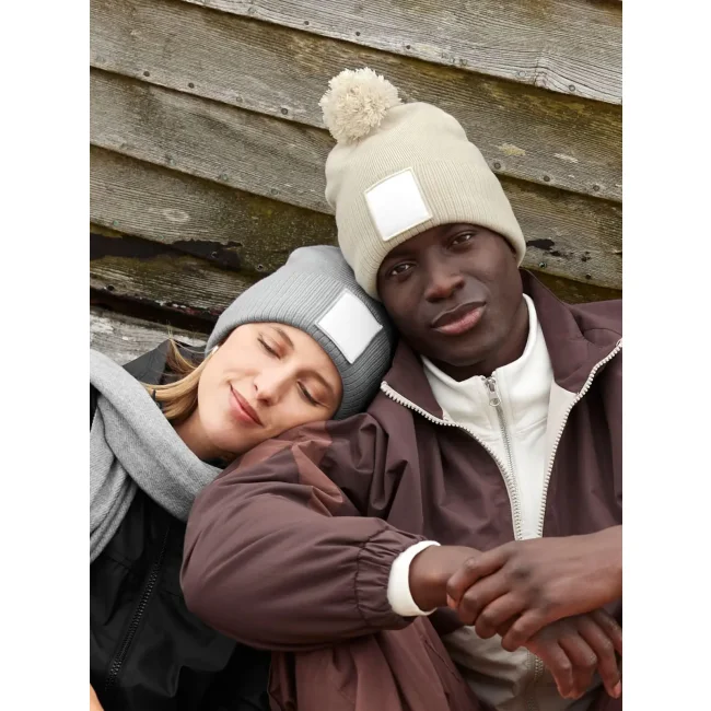 Berretto in maglia a doppio strato realizzato in 100% poliestere riciclato, dotato di pom pom in tinta e patch in cotone twill. La fodera in micropile assicura comfort e calore, mentre l'etichetta strappabile facilita il rebranding.