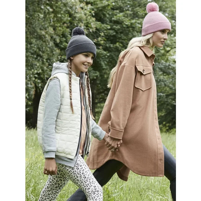 Cuffia junior in maglia a doppio strato, realizzata in acrilico soft-touch al 100%. Il modello con risvolto e il pompon in tinta offrono comfort e stile, mentre l'etichetta removibile TearAway facilita il rebranding.