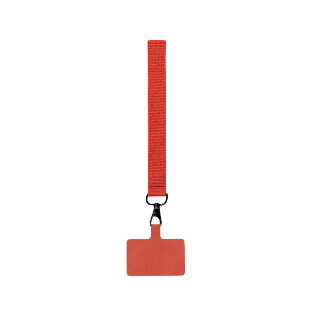 Originale braccialetto supporto in morbido poliestere, adattabile a tutti i tipi di polso e con accessorio per il trasporto da posizionare tra la custodia e lo smartphone. Tracolla abbinata e moschettone girevole in metallo nero. Disponibile in un'ampia gamma di colori.