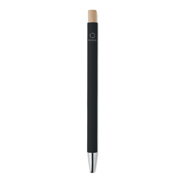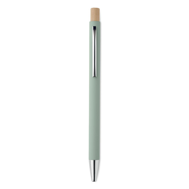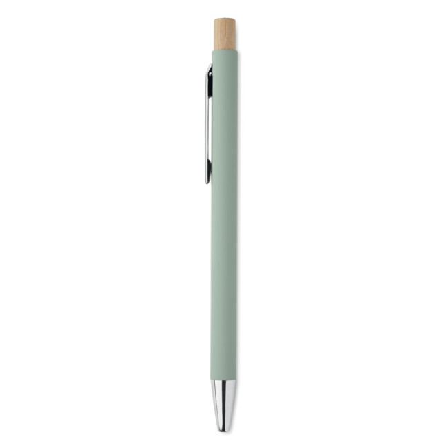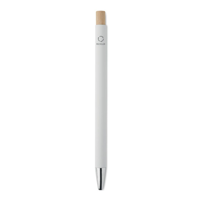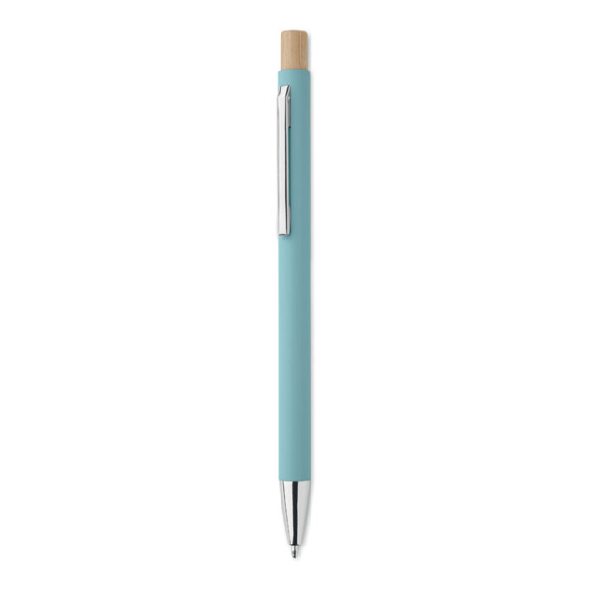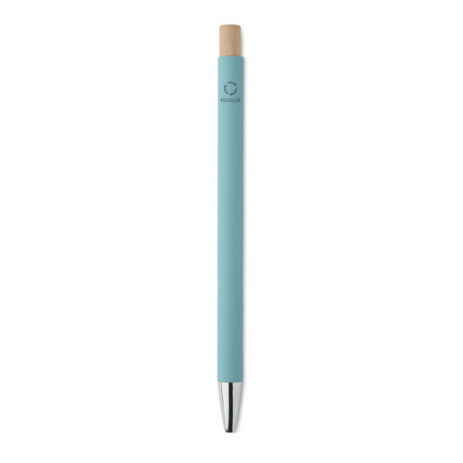 Penna push ball in alluminio riciclato. Punta e clip argentate. Inchiostro blu.