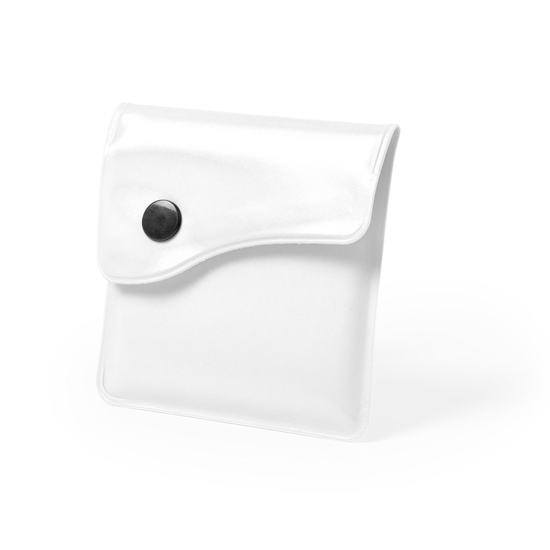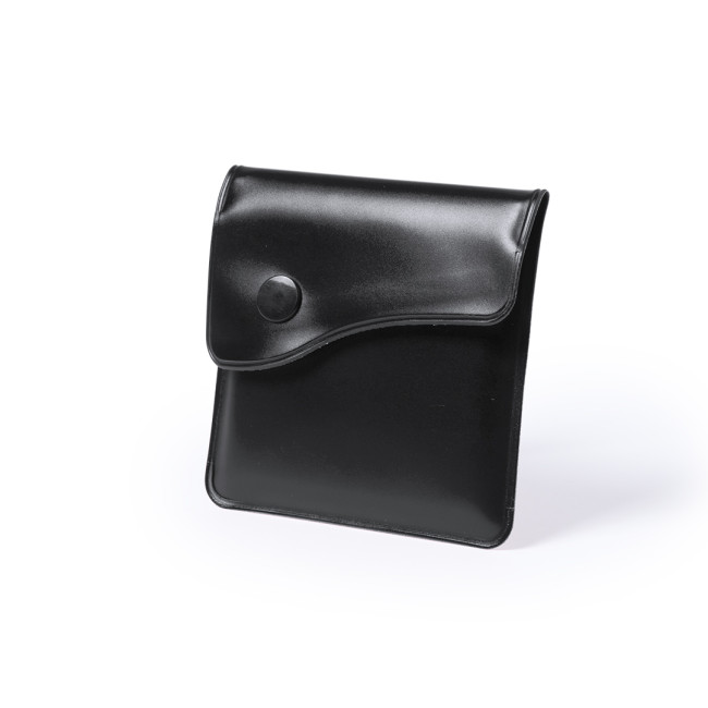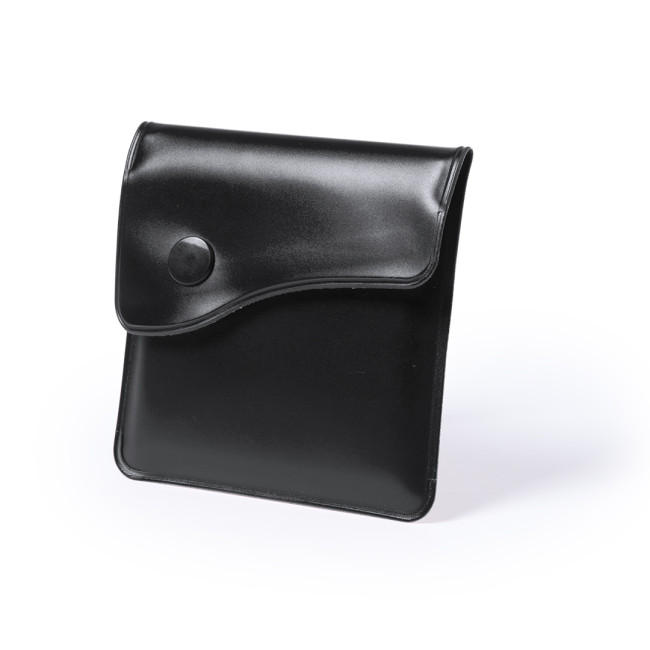 Posacenere a tasca con corpo rifinito in colori vivaci e interno in alluminio ignifugo. Originale chiusura a patta con bottone.