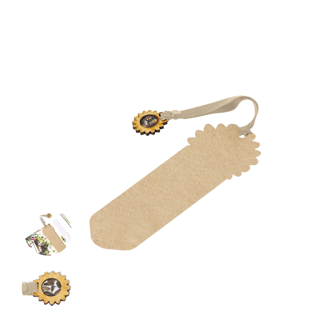 Pratico segnalibro in cartone riciclato, con un design a forma di freccia e un cordoncino nero che lo rende facile da trovare. All'estremità del cordoncino è incorporata un'originale capsula con semi di girasole.Il cartone riciclato proviene dal riutilizzo di eccedenze di produzione e dal riciclo della carta al termine della sua vita utile, rendendolo una tela ecologica e sostenibile