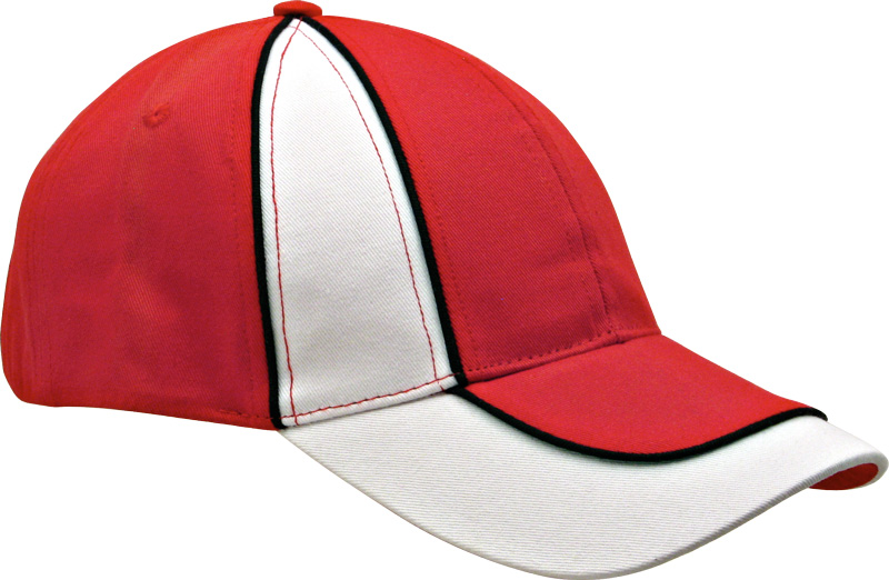 Cappellino "Actiwear", cotone leggero, 6 pannelli, visiera preformata. Cappellino colorato con banda bianca, profili colorati e forellini ricamati in tinta, chiusura con placca in metallo.