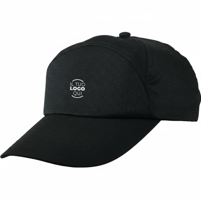Berrettino Actiwear di colore nero, dotato di fibbia in plastica per una chiusura sicura. Questo cappellino è progettato per essere versatile e pratico, ideale per un uso quotidiano. La sua struttura compatta lo rende facilmente trasportabile.