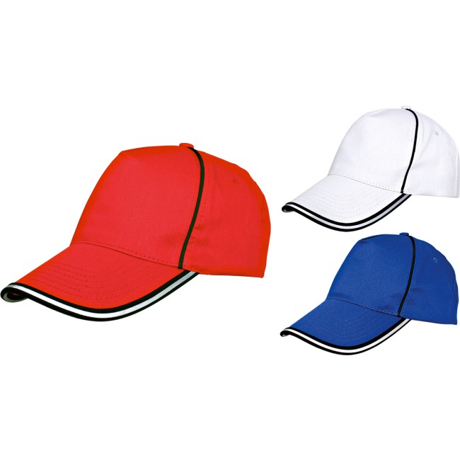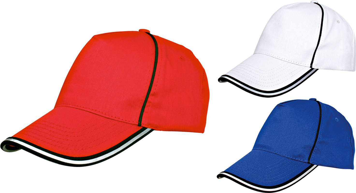 Berrettino in cotone 100% leggero, 5 pannelli, particolari neri e catarinfrangenti. Taglia unica.