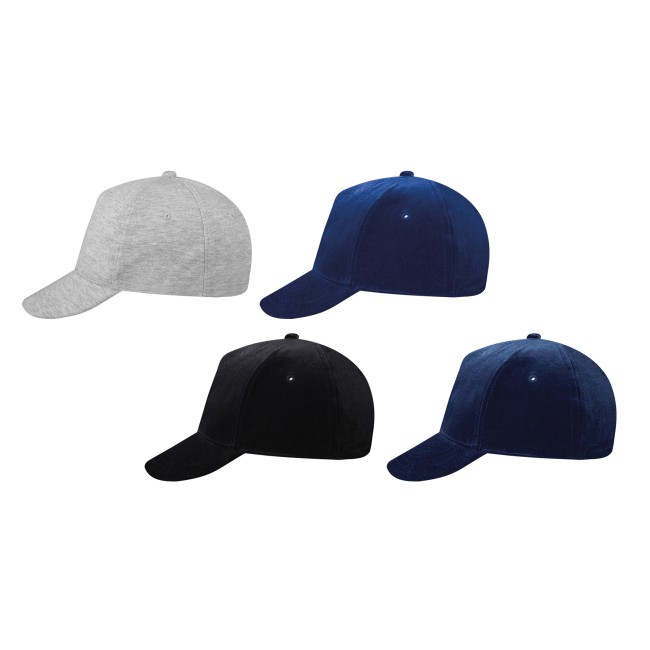 Berrettino 5 pannelli, visiera rigida , chiusura in velcro regolabile. Taglia unica.