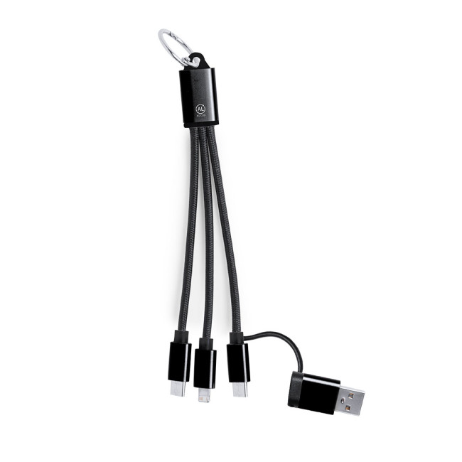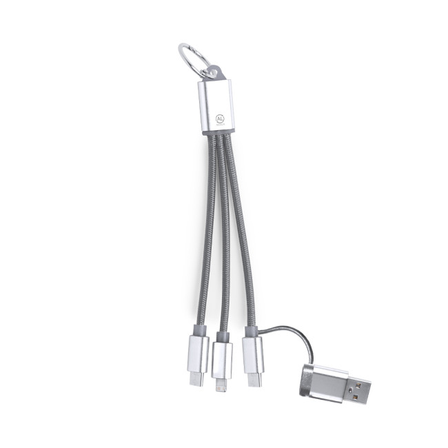 Cavo caricatore in Alluminio Riciclato. Con connessione di ingresso duale di tipo C/USB e uscite di tipo C, Lightning e Micro USB. Include distintivo di Alluminio Riciclato.L'alluminio riciclato è un materiale con possibilità di riciclaggio quasi infinite, senza perdere le sue proprietà originali e consumando meno energia in questo processo.Certificazione GRS (Global Recycled Standard / Standard di Riciclaggio Globale), che garantisce l'origine riciclata del materiale usato per fabbricare il prodotto.Connessione Micro USB, di tipo C e Lightning 5V CC 2.4A