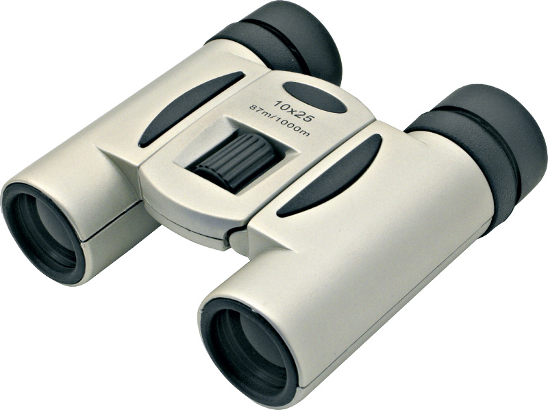 Binocolo ingrandimento 10x25 colore silver in astuccio in pelle nera