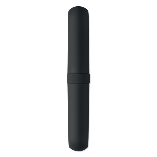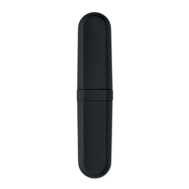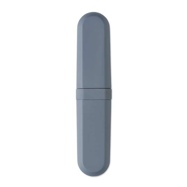 Set di posate riutilizzabili in custodia in PLA. Ogni set comprende una forchetta, un coltello, un cucchiaio e una pratica custodia portatile.