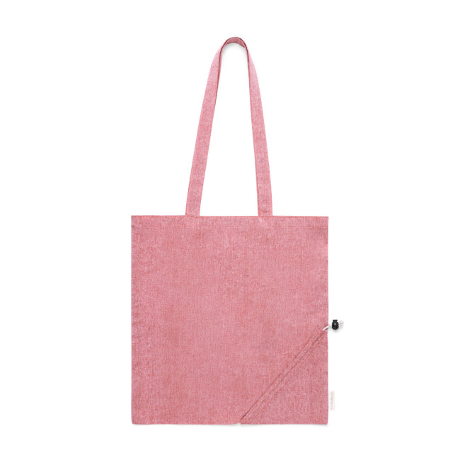 Borsa pieghevole della linea natura, realizzata in cotone riciclato da 120 g/m2. Finitura cucita e manici lunghi rinforzati (70 x 2,5 cm). Dimensioni ridotte grazie alla coulisse con accessorio di regolazione. Disponibile in un'ampia gamma di colori, con logo cotone riciclato sull'etichetta esterna. Resistenza fino a 6 kg di peso.Con certificazione GRS (Global Recycled Standard), che garantisce l'origine riciclata del materiale utilizzato per la fabbricazione del prodotto.