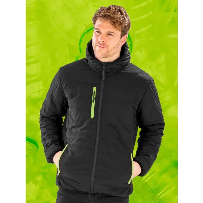 Strato esterno: 100% poliestere riciclato TOPGREEN con membrana TPU (non riciclato). Imbottitura: 160 g/m², 100% poliestere riciclato REPREVE®. Fodera cappuccio: 200 g/m², 100% pile in poliestere riciclato TOPGREEN. Fodera maniche: 100% JIAREN poliestere riciclato. Giacca invernale con fodera in pile, tasche laterali con zip, una tasca interna, cappuccio con fodera in pile. Zip frontale YKK con protezione per il mento.