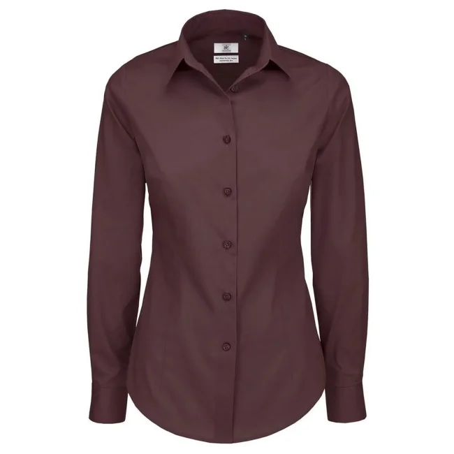 97% cotone pettinato, 3% elastane. Camicia dal taglio femminile, leggermente sfiancata. Polsino con 2 bottoni, l'ultimo ad asola orizzontale, bottoni tono su tono effetto madreperla con cucitura a croce. Bottone di riserva.