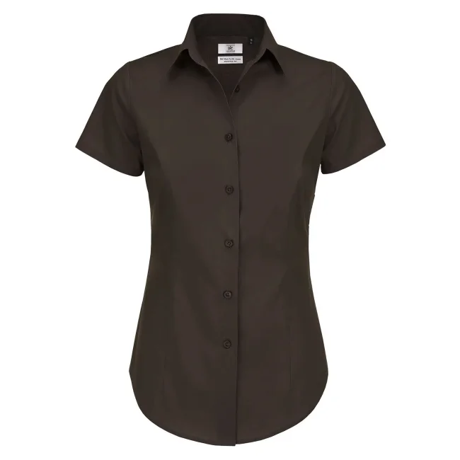97% cotone pettinato e 3% elastane. Camicia in popeline elegante con colletto dal taglio femminile, leggermente sfiancata ai lati. Orlo sul bordo delle maniche. Bottoni tono su tono cuciti a croce con effetto madreperla. Chiusura orizzontale sull'ultimo bottone. Un bottone di riserva.