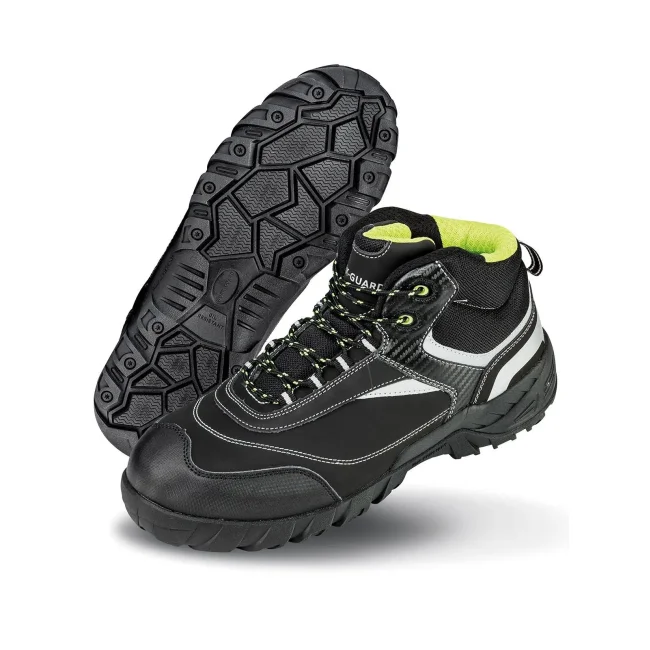 Parte superiore: 100% pelle nabuk, intersuola: 100% kevlar, suola: 100% EVA/gomma. Scarpe con puntale in acciaio, proprietà antiscivolo e antistatiche, dettagli riflettenti, caviglia e linguetta imbottita, calzatura solida e resistente. EN ISO 20345:2011 S3 SRC.