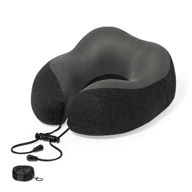 Comodo cuscino da collo portatile imbottito. Massima esperienza di comfort per qualsiasi viaggio grazie al cuscinetto soft touch e alle chiusure a coulisse per una vestibilità corretta e confortevole. Con rivestimento in RPET per la protezione durante il trasporto ed etichetta distintiva. Il materiale RPET è realizzato con plastica riciclata per favorire il riutilizzo dei rifiuti plastici e contribuire alla sostenibilità del pianeta.