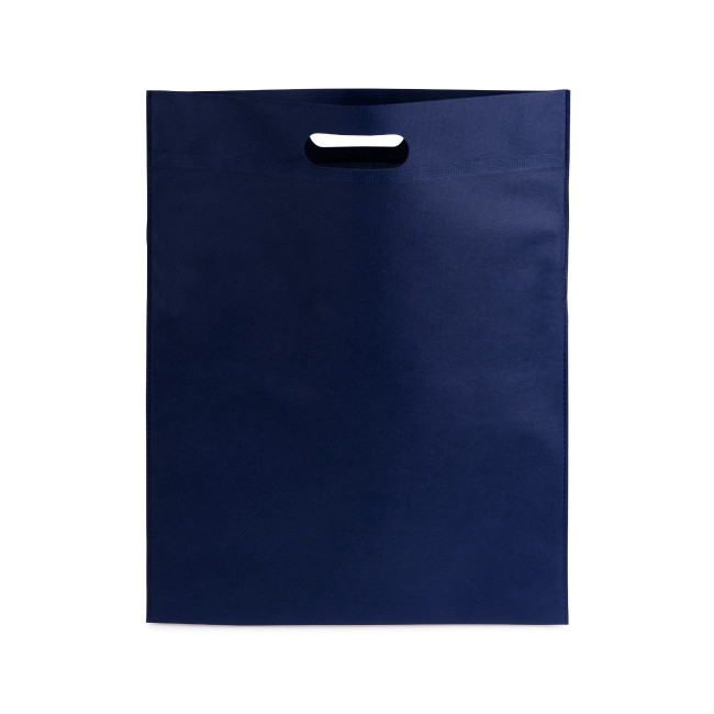 Shopper in TNT con manici fustellati rinforzati e finitura termosaldata. Resistenza fino a 5 kg di peso.