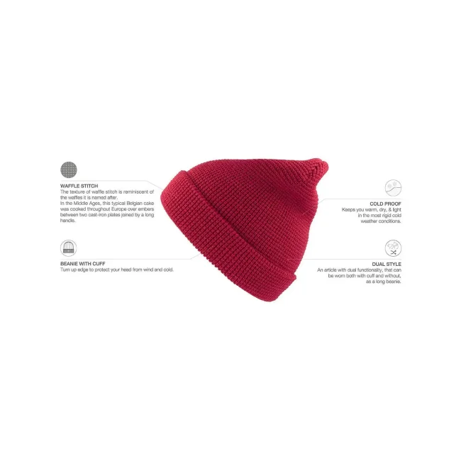 100% Acrilico. Cuffia con risvolto, doppio strato. Etichetta removibile. Taglia unica.