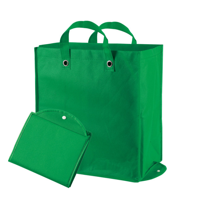 borsa shopping richiudibile chiusura con bottone in plastica rifiniture cucite manici corti tecnica di stampa consigliata: serigrafica