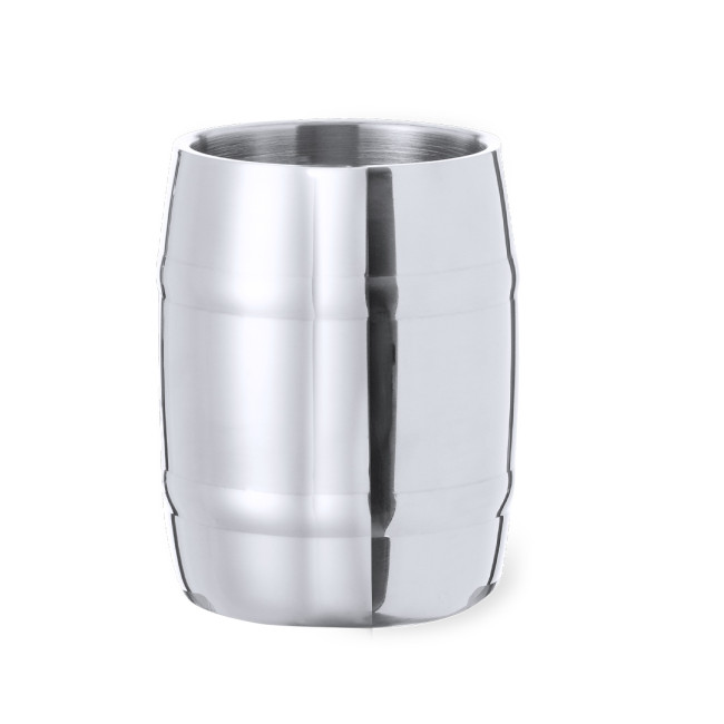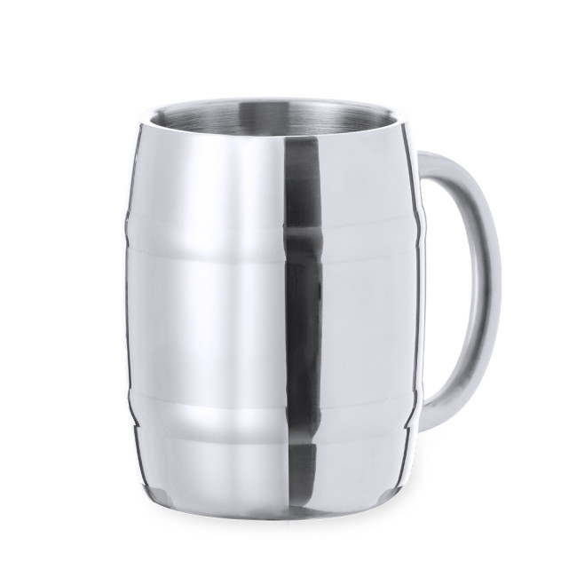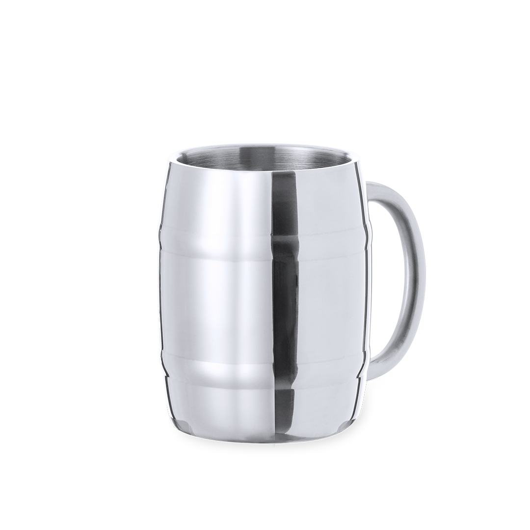 Boccale in acciaio inox da 450 ml, progettato per i bevitori di birra più esigenti. La sua elegante finitura metallica e la comoda impugnatura lo rendono ideale per ogni occasione. Presentato in una scatola kraft di design, è personalizzabile con logo aziendale, permettendo di utilizzarlo anche come gadget promozionale. La forma a botte conferisce un tocco distintivo al prodotto, rendendolo un'ottima scelta per eventi o regali aziendali.