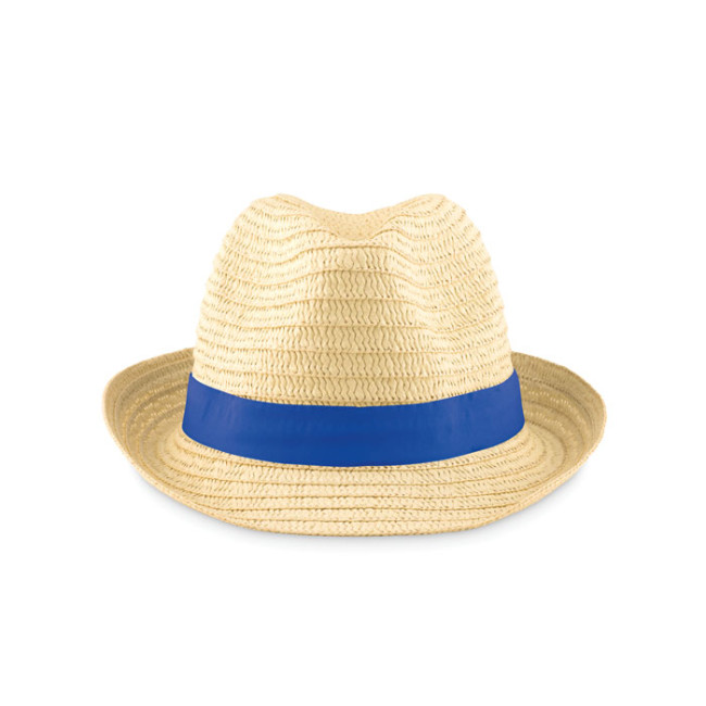 Cappello in carta con banda colorata in poliestere, progettato per offrire uno stile unico e naturale. Per ordini neutri, la banda viene fornita separata dal cappello. Personalizzabile con logo aziendale, è un accessorio distintivo per ogni occasione.