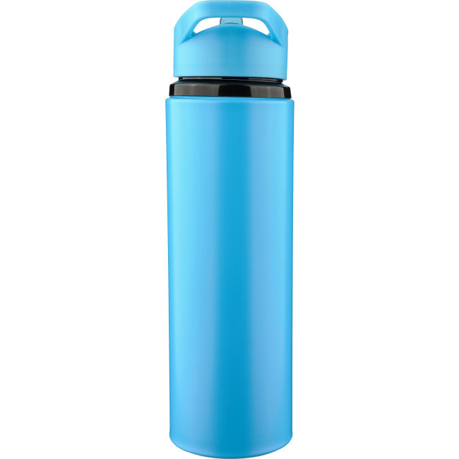 Borraccia in acciaio inox 304 riciclato a parete singola, dotata di tappo a vite in PP con anello per il trasporto, beccuccio richiudibile e cannuccia interna, adatta esclusivamente per bevande fredde. Include il logo “acciaio inox riciclato” inciso sul fronte, confezionata singolarmente in una scatola in cartone avana, capacità 500 ml.