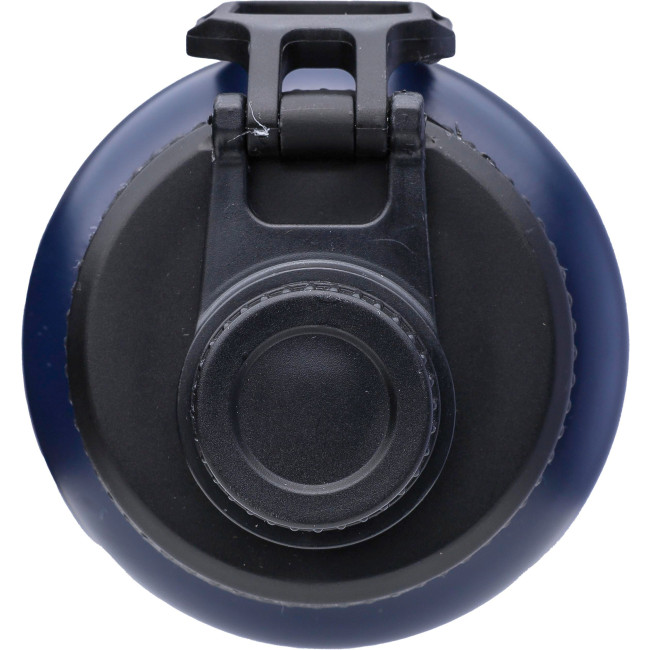Borraccia in acciaio inox 304 (esterno acciaio inox 201), doppia parete, presenta un tappo in PP con erogatore a vite e anello per il trasporto, il fondo comprende un piccolo scomparto a vite per riporre gli oggetti, confezionata singolarmente in una scatola in cartone avana, capacità 1.000 ml