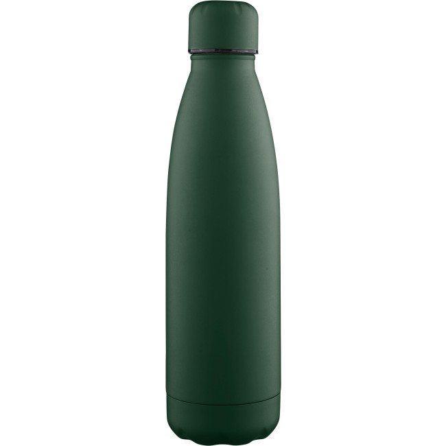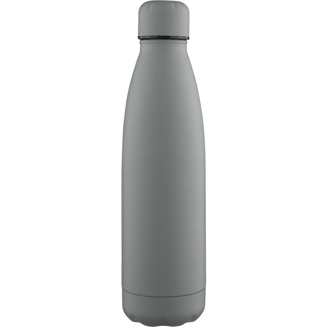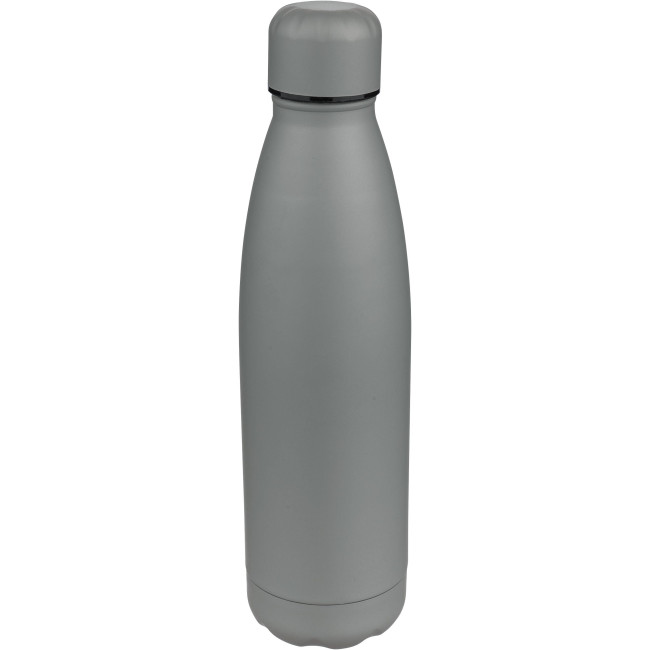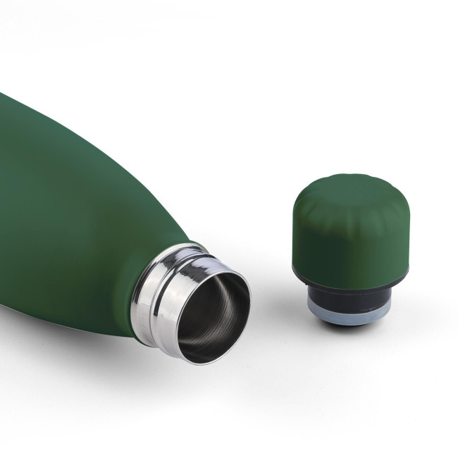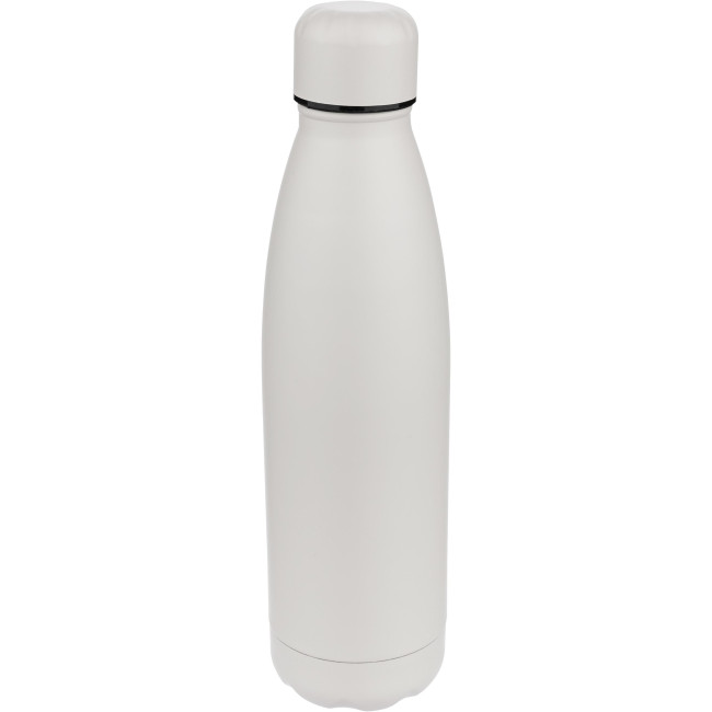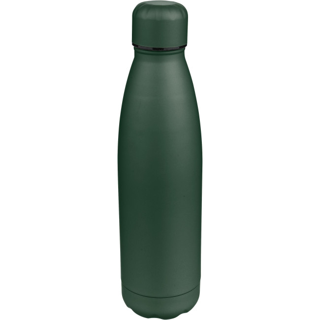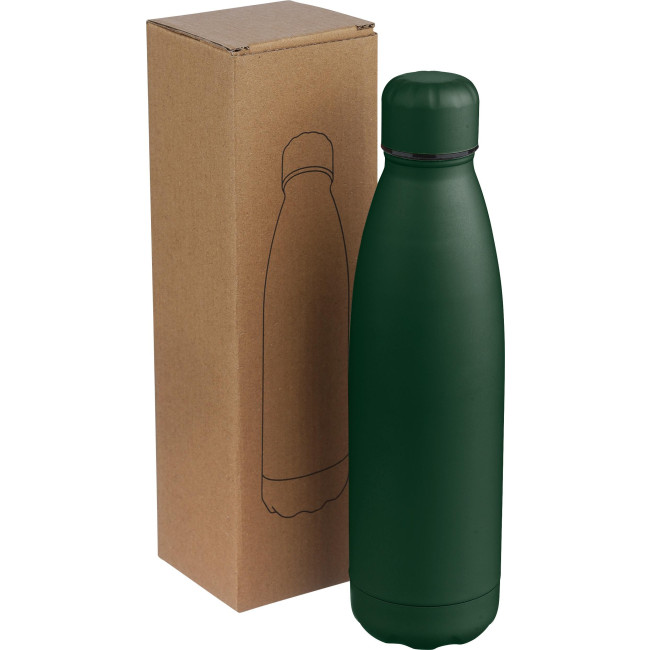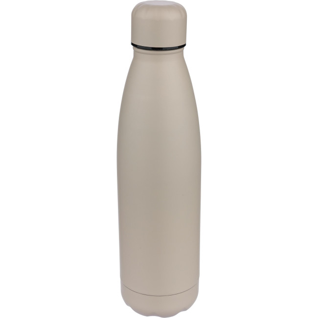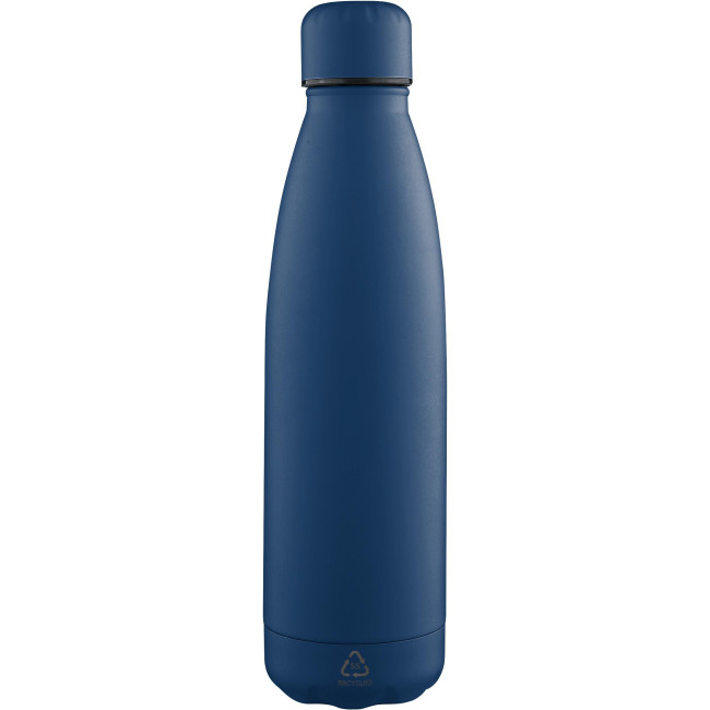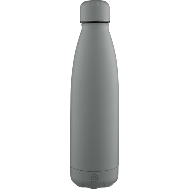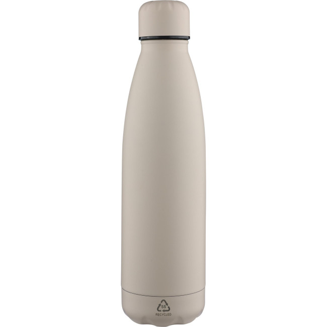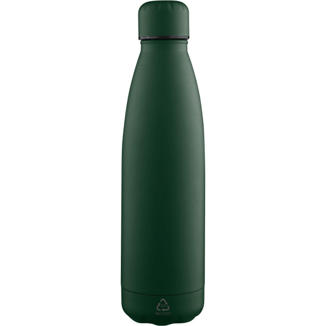 Bottiglia in acciaio inox riciclato con capacità di 500 ml e isolamento a doppia parete che mantiene le bevande calde o fredde fino a 12 ore. Interno resistente in acciaio 304, finitura opaca e tappo a vite e base in tinta creano un look pulito. Presenta il logo «»acciaio inox riciclato»» inciso ed è confezionata singolarmente in una scatola in cartone avana.