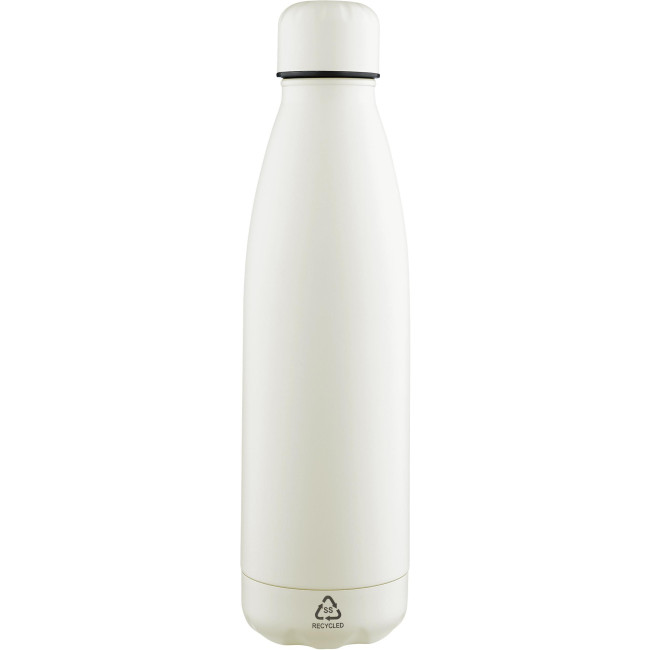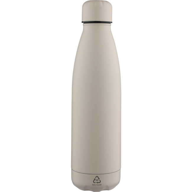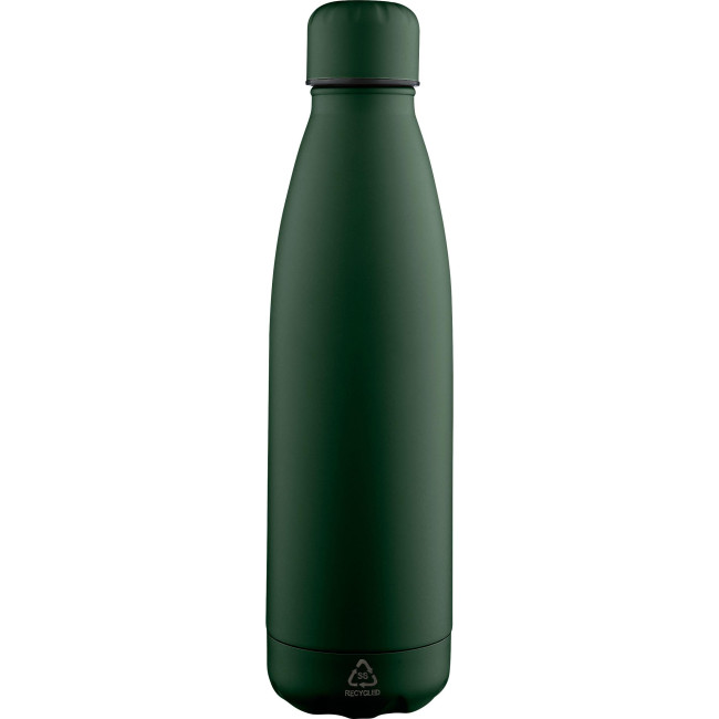Bottiglia in acciaio inox riciclato a parete singola con capacità di 700 ml che mantiene le bevande fresche per 3-4 ore. L’interno in acciaio 304 resistente offre resistenza alla ruggine e un contatto sicuro con le bevande. Finitura opaca con tappo a vite e base abbinati, presenta il logo «»acciaio inox riciclato»» inciso ed è confezionata singolarmente in una scatola in cartone avana.
