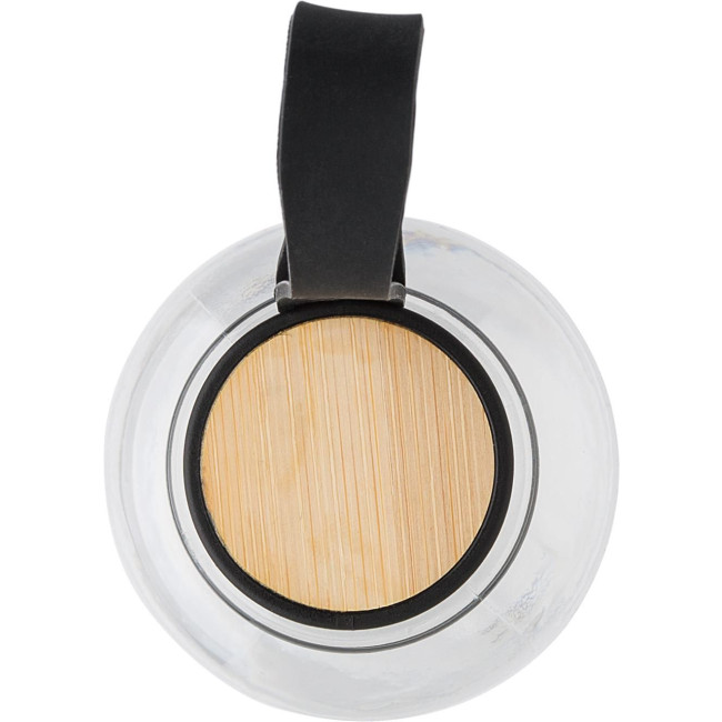 Borraccia in rPET, tappo in PP con dettagli in bambù sul lato superiore, cinturino in silicone, confezionati singolarmente in polybag riciclato, capacità 500 ml
