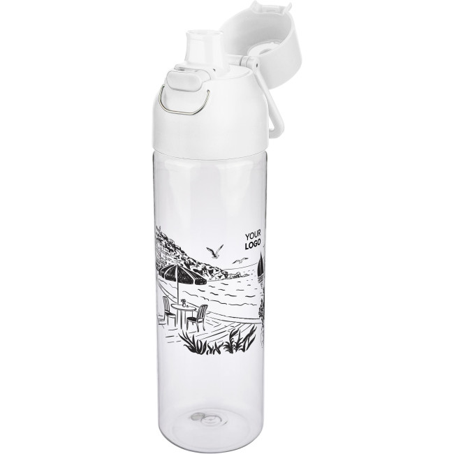 Borraccia in Tritan con capacità di 750 ml, con corpo trasparente e tappo colorato. Realizzata in PP resistente e leggero, resistente all’umidità, agli agenti chimici e all’usura. Include una chiusura a bottone sicura e una maniglia superiore per un facile trasporto, ideale per l’uso quotidiano al lavoro, a scuola o all’aperto.