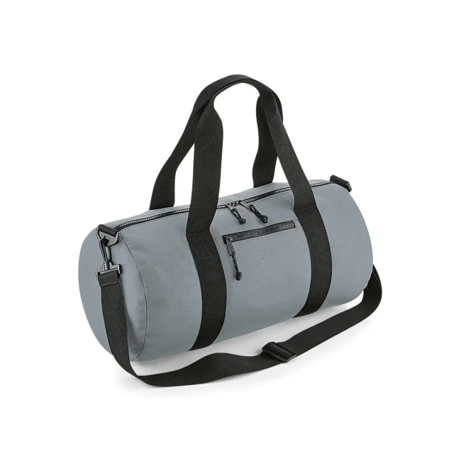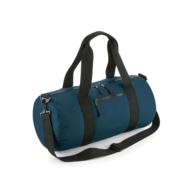 Borsa barrel riciclata personalizzabile in poliestere 600D con tasca zip