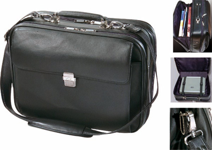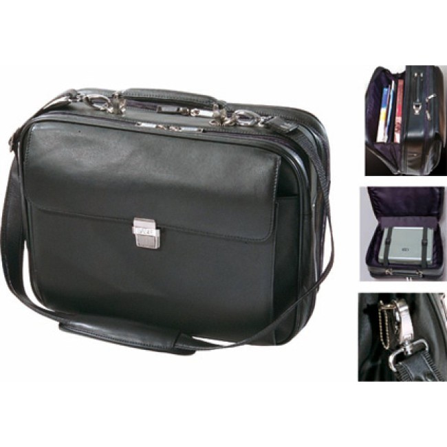 Borsa diplomatica in pelle, tasche interne, manico rigido e tracolla. Scatola di confezione singola.