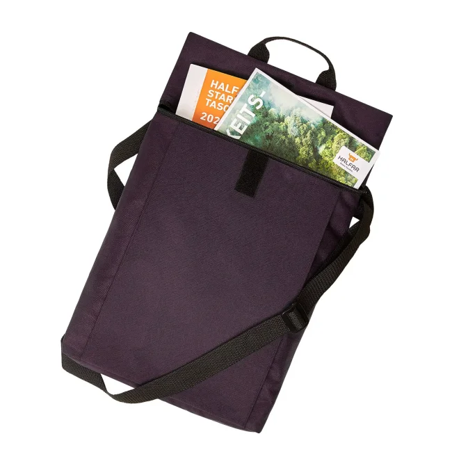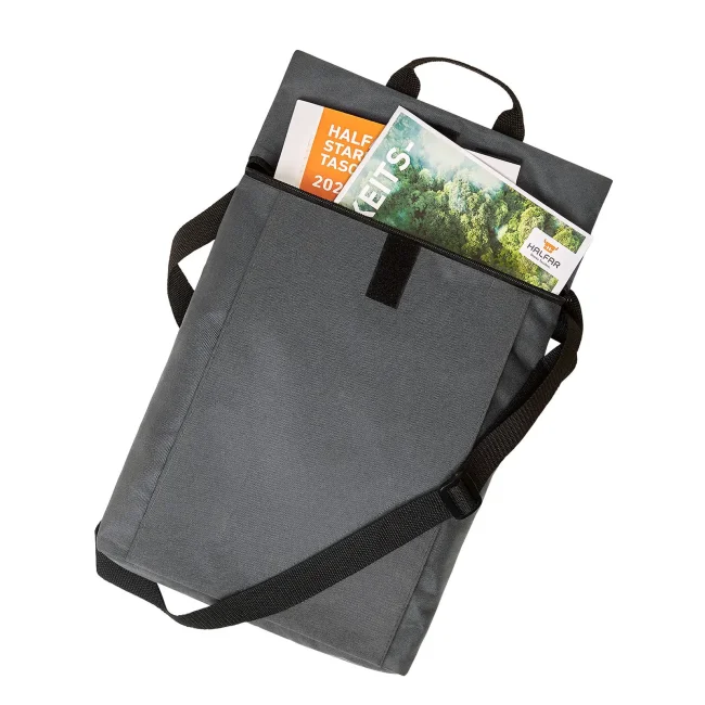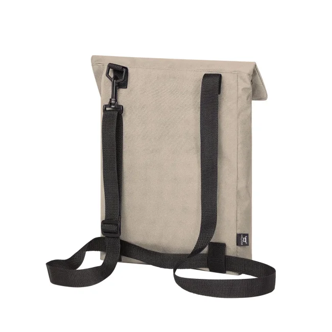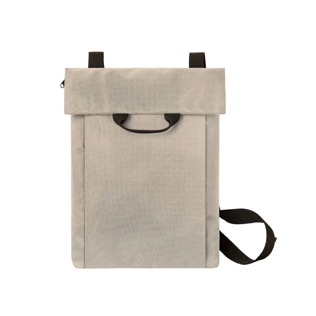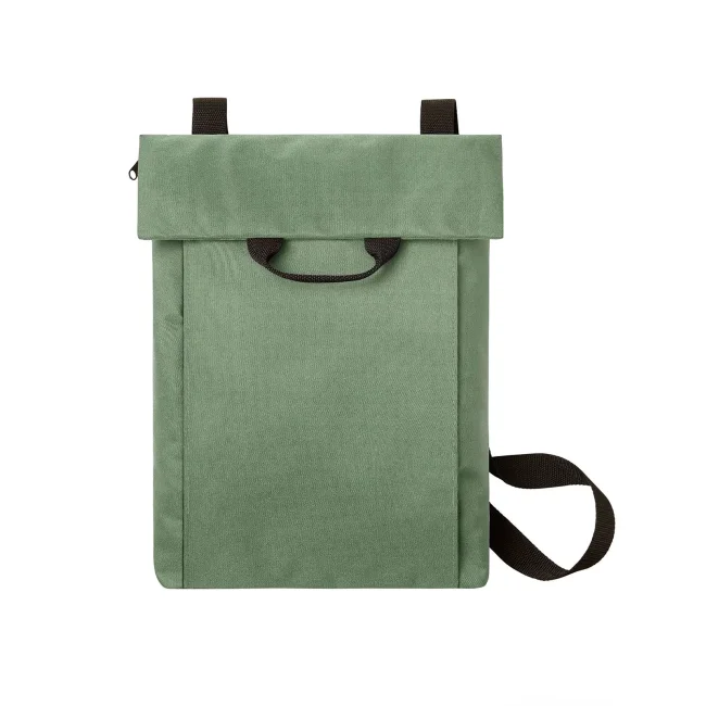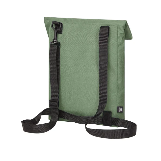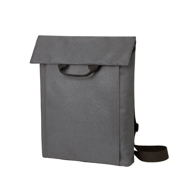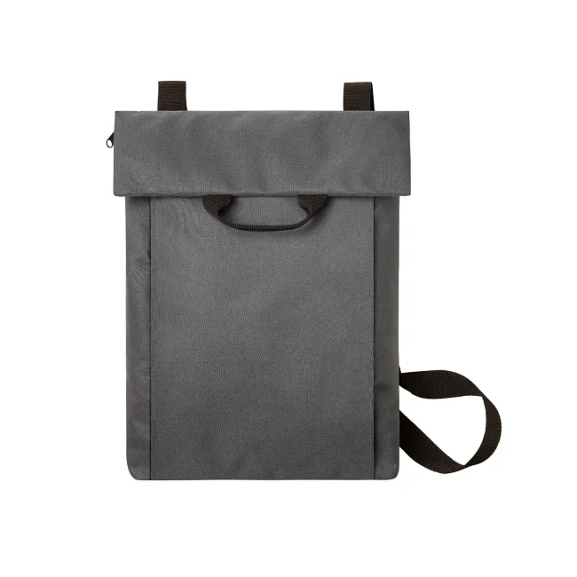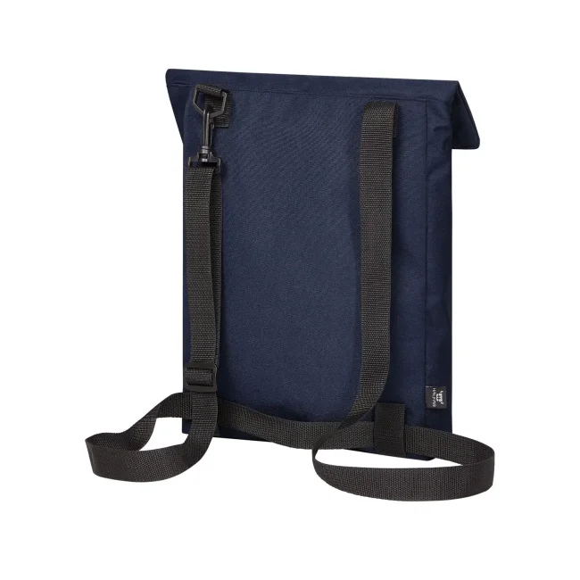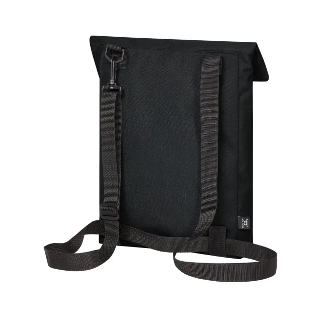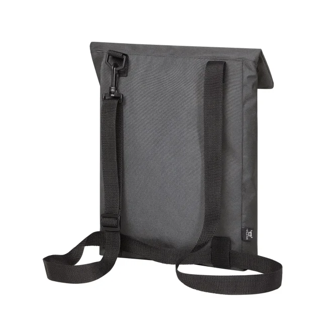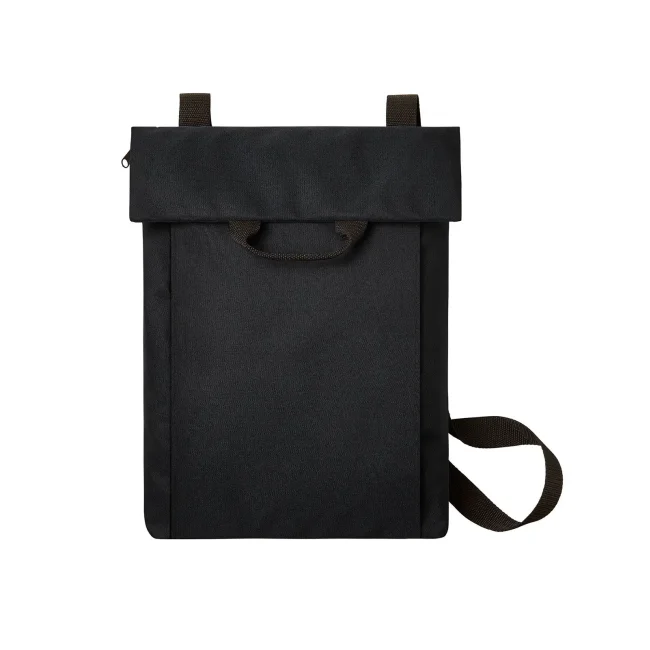 100% RPET 600d. Compagno versatile e funzionale con ampia superficie pubblicitaria, scomparto principale con chiusura lampo nascosta, adatto a documenti A4, sistema di cintura regolabile in lunghezza, trasportabile come borsa tracolla o zaino, manico
