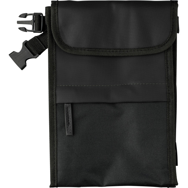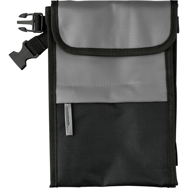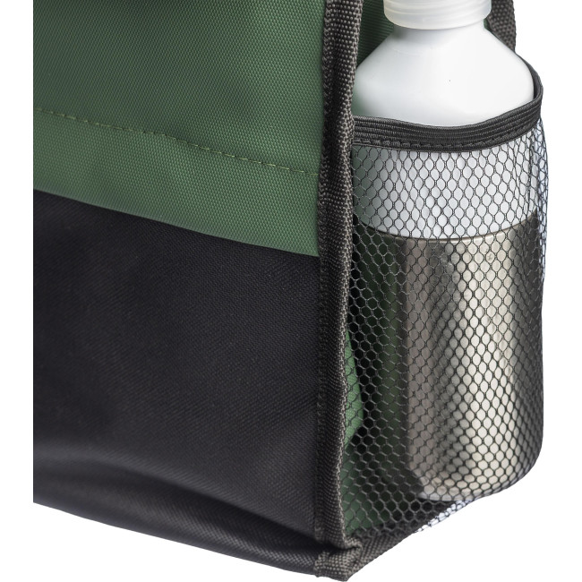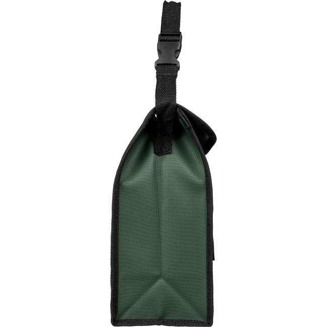 Borsa termica in poliestere rPET (600D) con rivestimento in PU idrorepellente.Dotata di imbottitura in PE da 2 mm e fodera interna in alluminio per un efficace isolamento termico.Presenta una tasca frontale con cerniera, scomparto superiore e una tasca laterale in rete, oltre a una chiusura adesiva, maniglia per il trasporto, fibbia in plastica e tracolla regolabile. Capacità: 5 litri | Tre scomparti. Include etichetta rPET all’esterno e etichetta personalizzata all’interno.