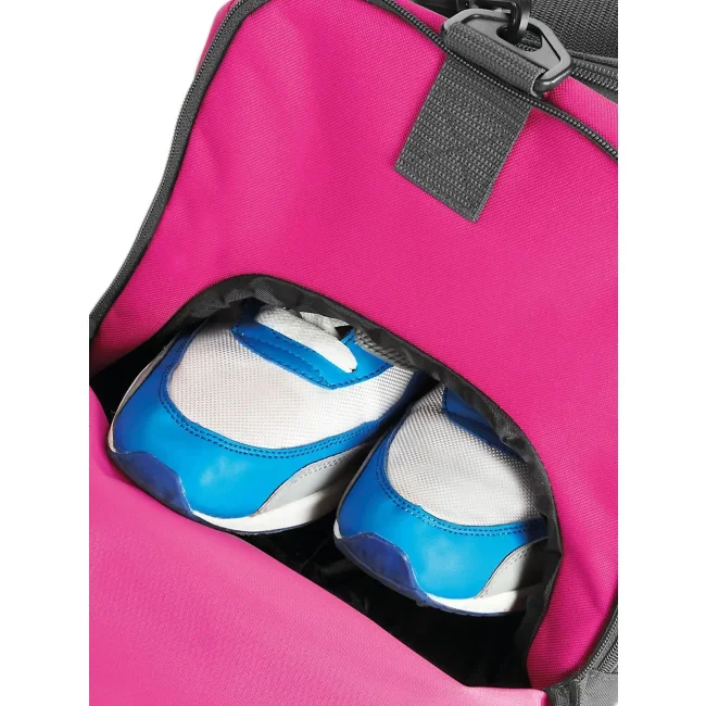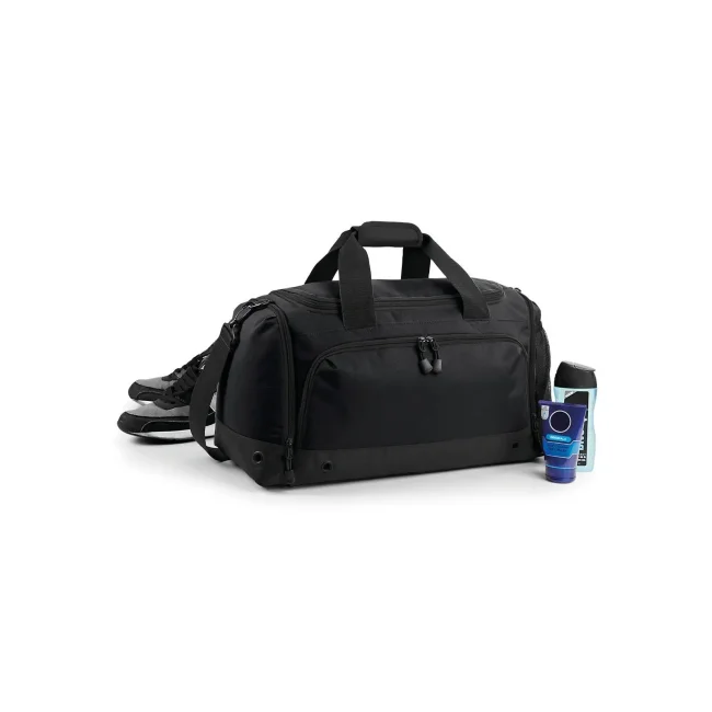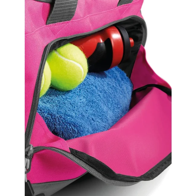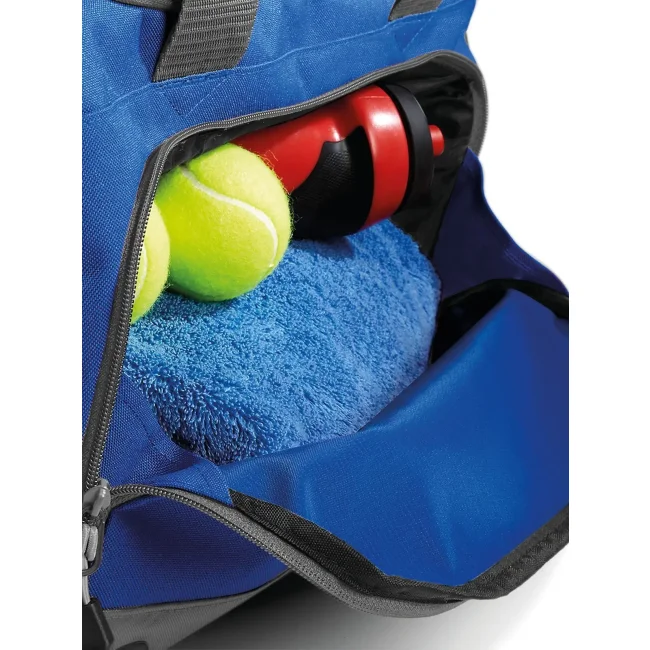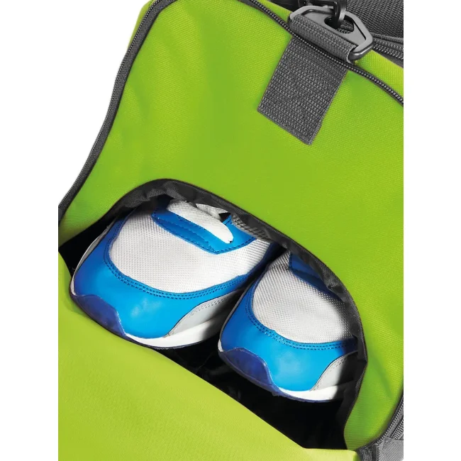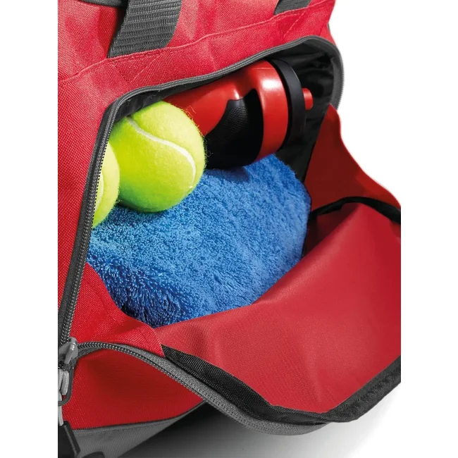 Borsa Athleisure Holdall realizzata in 100% combinazione di poliestere 600d e 420d, dotata di tracolla regolabile e tasche esterne con zip per un facile accesso. Le dimensioni sono 54 x 29 x 26 cm, con una capacità di 30 litri e un'area di stampa frontale di 20 x 13 cm.