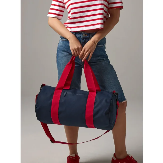 Borsone Original Barrel Bag realizzato in poliestere 600D, ideale per trasportare oggetti con facilità. Dotato di lunga tracolla regolabile e due manici corti per il trasporto a mano. Dimensioni: 50 x 25 x 25 cm, capacità di 20 litri e area di stampa di 13 x 12 cm per personalizzazioni.