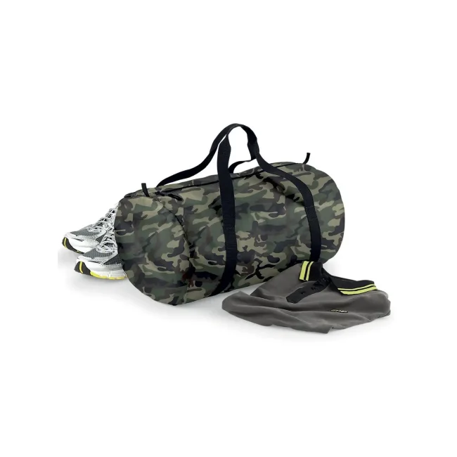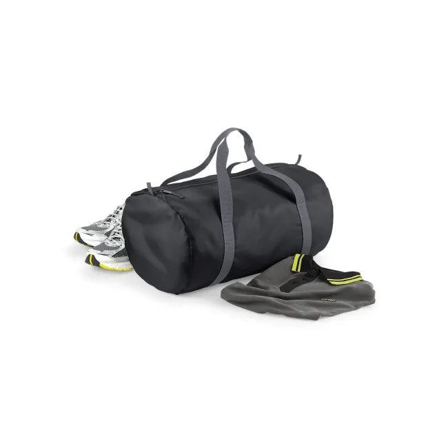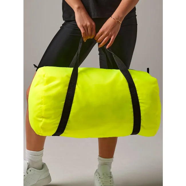 Borsone Packaway Barrel Bag realizzato in poliestere 210D, progettato per un utilizzo versatile e compatto. Include una pochette coordinata e tessuto ultra leggero e impermeabile. Dimensioni: 50 x 30 x 26 cm, capacità di 32 litri e area di stampa massima di 20 x 18 cm per personalizzazioni.