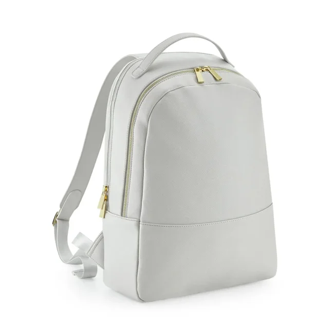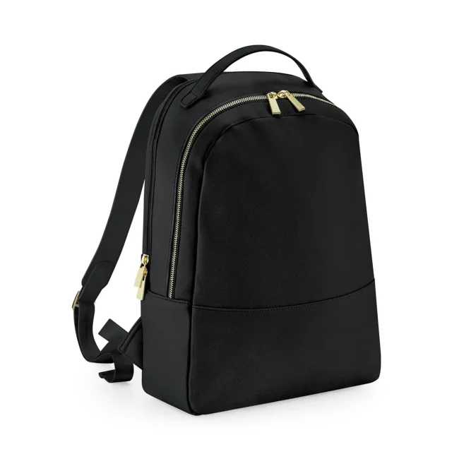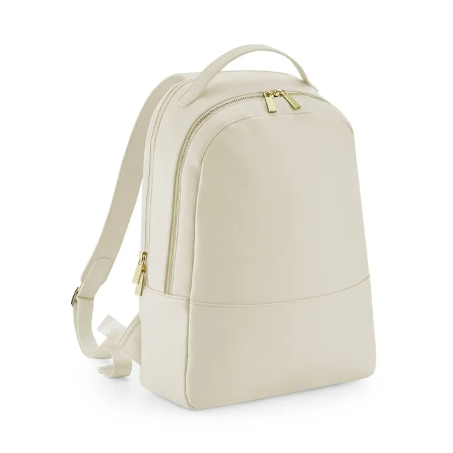 100% simil-pelle PU. Zainetto effetto saffiano, scomparto principale con zip. Tasca interna, portabottiglie interno, tasca separata sul pannello posteriore con cerniera, tasca interna con cerniera. Scomparto imbottito per laptop fino a 14". Fodera morbida, manico, cerniere in metallo dorato lucente, spallacci regolabili in tessuto. Etichetta removibile.