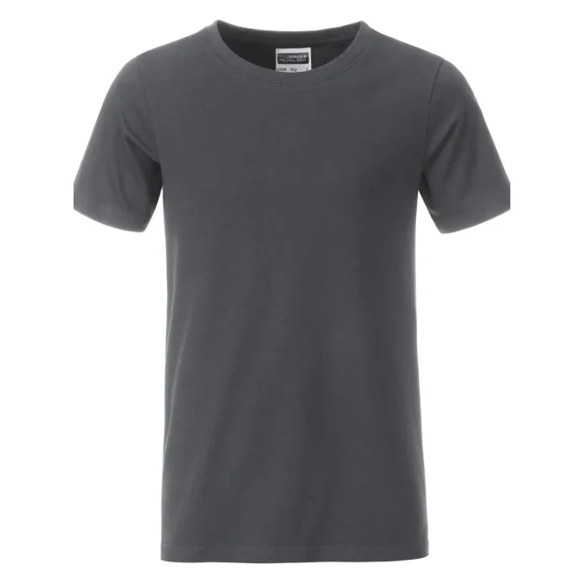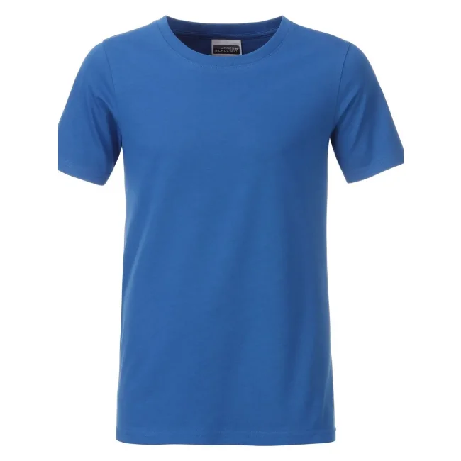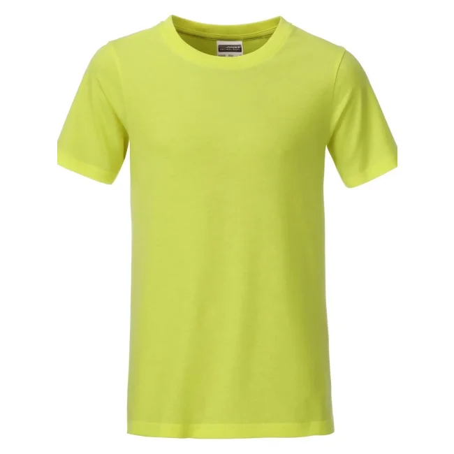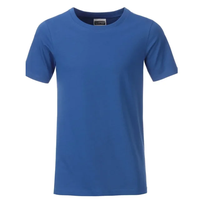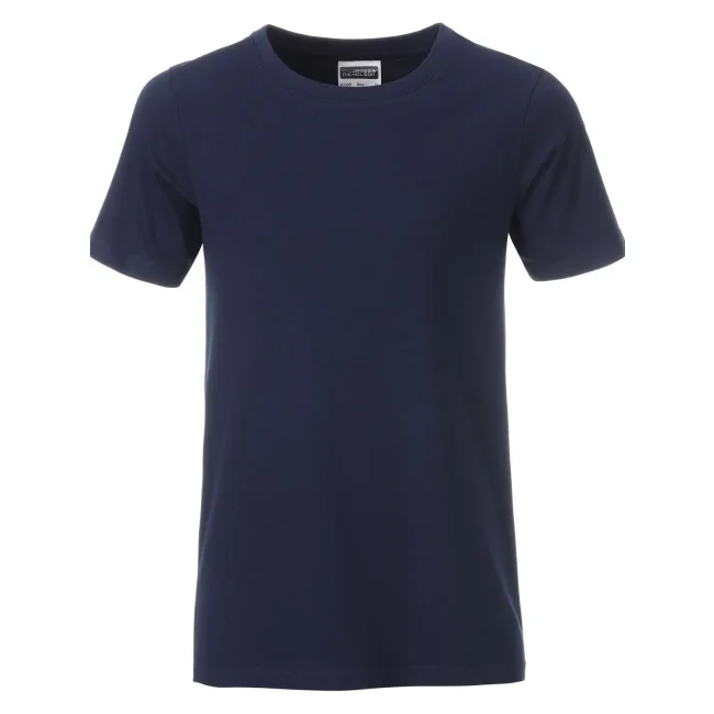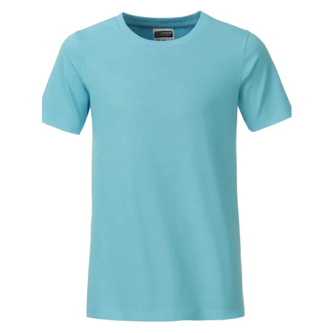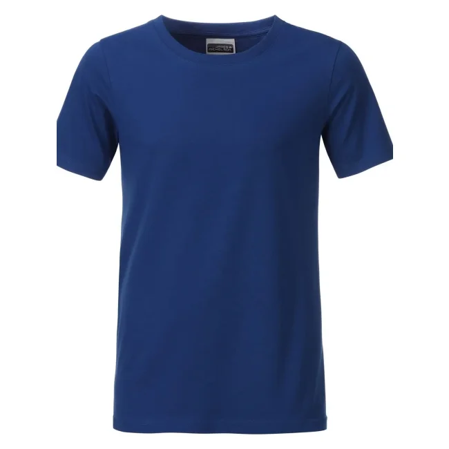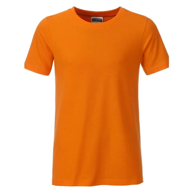 100% cotone organico. T-shirt classica per ragazzo in single jersey, collo rotondo con elastane, etichetta removibile.