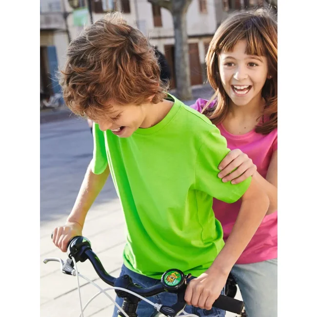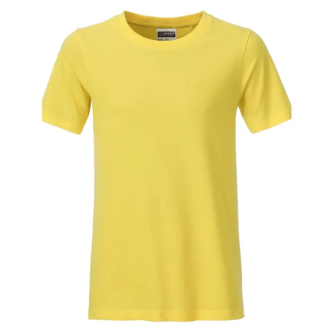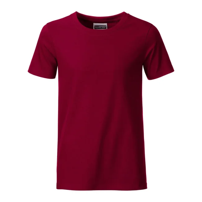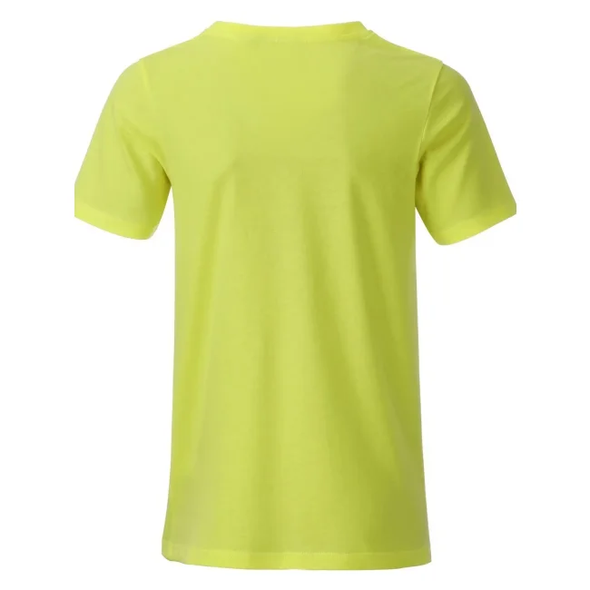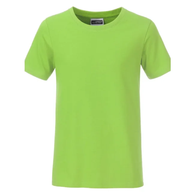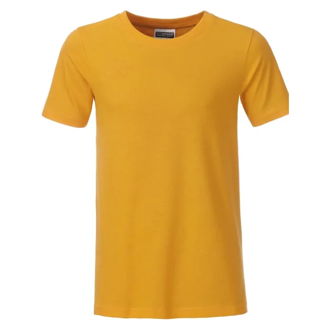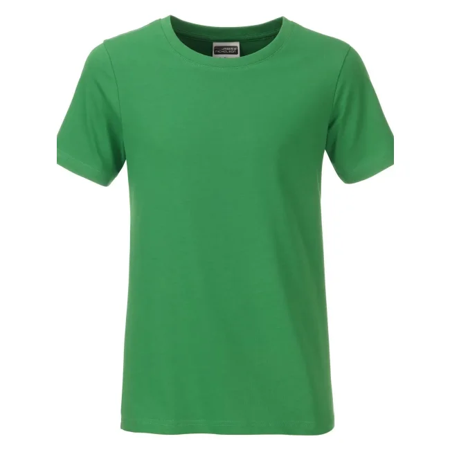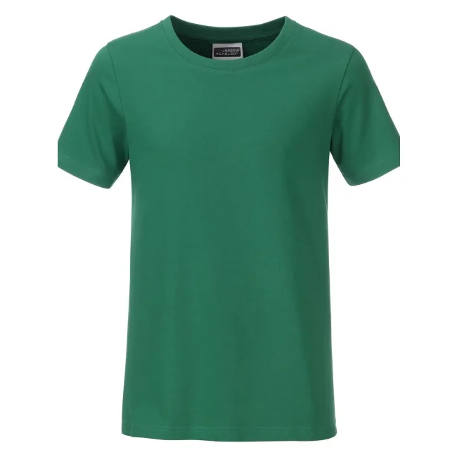 100% cotone organico. T-shirt classica per ragazzo in single jersey, collo rotondo con elastane, etichetta removibile.