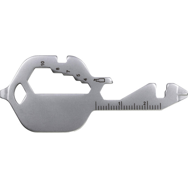 Il multi-tool Kee Shape, realizzato in resistente acciaio inox martensitico 2CR13, combina 12 utensili essenziali in un design compatto a forma di chiave per un facile aggancio a qualsiasi portachiavi. Include una chiave per raggi della bicicletta, chiavi inglesi (misure 4-10 mm), apribottiglie, cacciaviti a croce e piatti, piegafili e righelli sia in centimetri che in pollici. Confezionato in una elegante scatola regalo nera. E' un comodo utensile tutto in uno per le esigenze quotidiane.