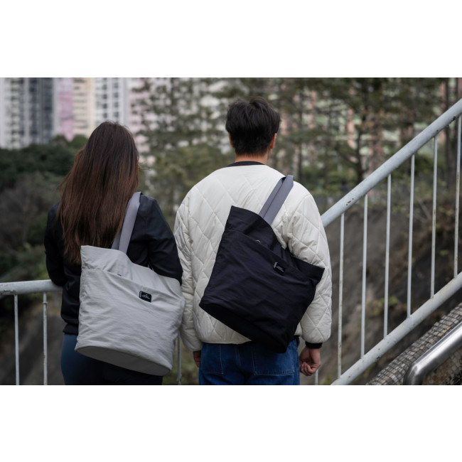 Borsa tote Terra, parte della Urban Vibe Bag Collection, realizzata in nylon riciclato ultra-leggero. Con un peso di soli 340 g e una capacità di 23 litri, offre quattro scomparti, tra cui una tasca imbottita per laptop. Dettagli come tasche laterali, schienale imbottito e chiusura magnetica la rendono pratica e versatile.