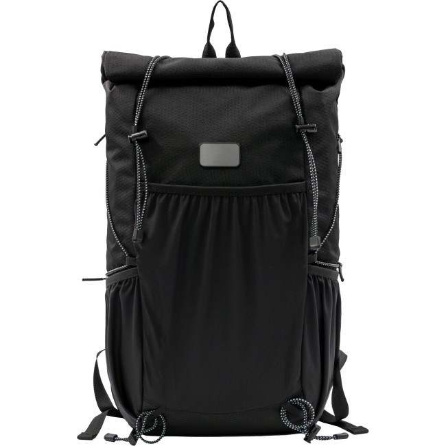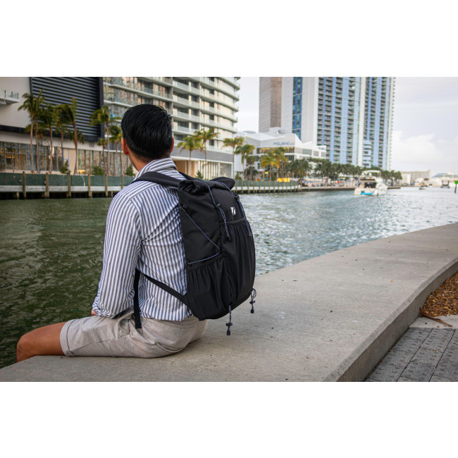 Lo zaino roll-top Venturer è un accessorio elegante ed ecologico, il che lo rende un regalo aziendale eccellente. Realizzato con bottiglie in PET riciclato, riflette un impegno per la sostenibilità offrendo al contempo un design elegante. Il suo spazioso scomparto principale, le diverse tasche elastiche e il vano imbottito adatto per un laptop da 16", offrono ampio spazio per i propri oggetti primari. Leggero, dotato di un sistema roll-top salvaspazio, lo zaino Venturer è ideale per pendolari, viaggiatori oppure per uscite informali. Le caratteristiche includono una tracolla regolabile, chiusura roll-top e spallacci ventilati, realizzato in tessuto idrorepellente e antimacchia.