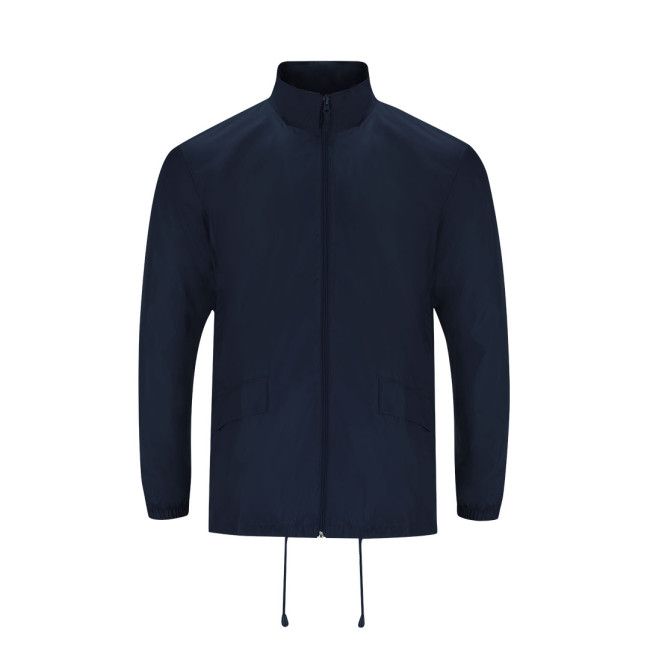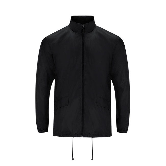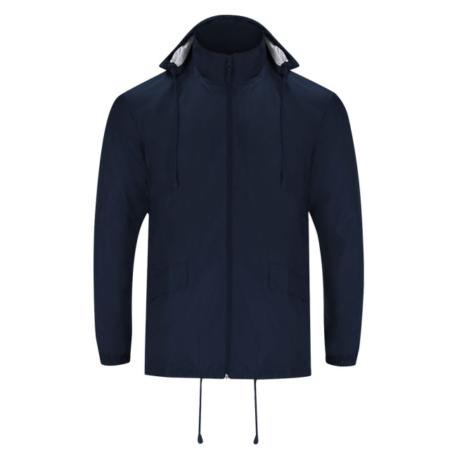 Impermeabile unisex con collo alto e cappuccio removibile.