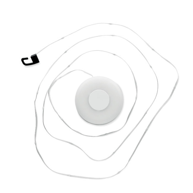 Stringa luminosa a LED retrattile in ABS. Include un cavo ricaricabile di tipo C e una batteria da 1000 mAh. 5 impostazioni di luce. Può essere utilizzata come lampada portatile (a sospensione). Lunghezza del cavo: 8 cm.