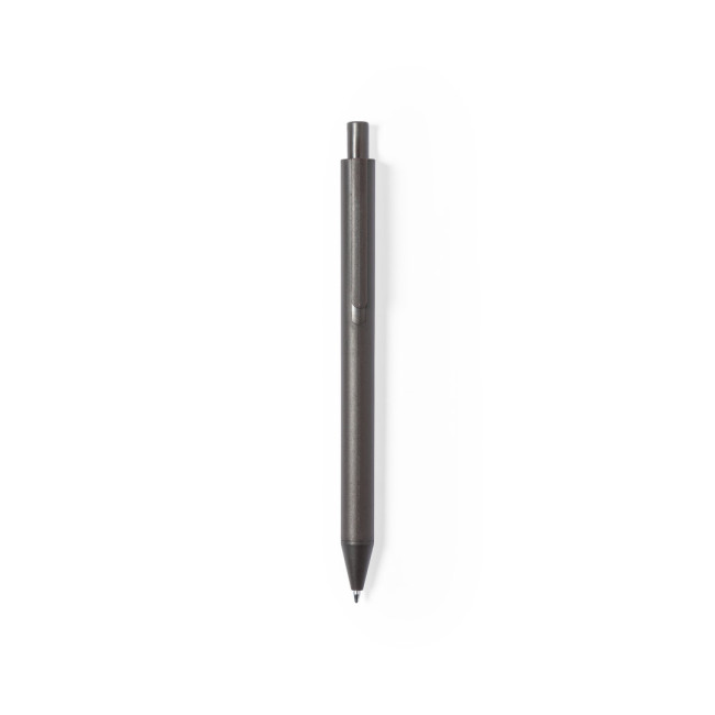 Penna della linea nature, con corpo realizzato in fibra di caffè e dettagli coordinati. Dotata di meccanismo a pulsante e inchiostro blu, con distintivo in fibra di caffè sul corpo.
