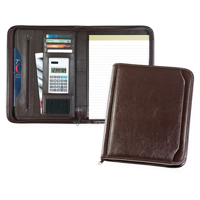 cartella sottobraccio interno multitasche blocco per appunti e calcolatrice 8 cifre chiusura con cerniera corredata di astuccio tecnica di stampa consigliata: serigrafica - UV