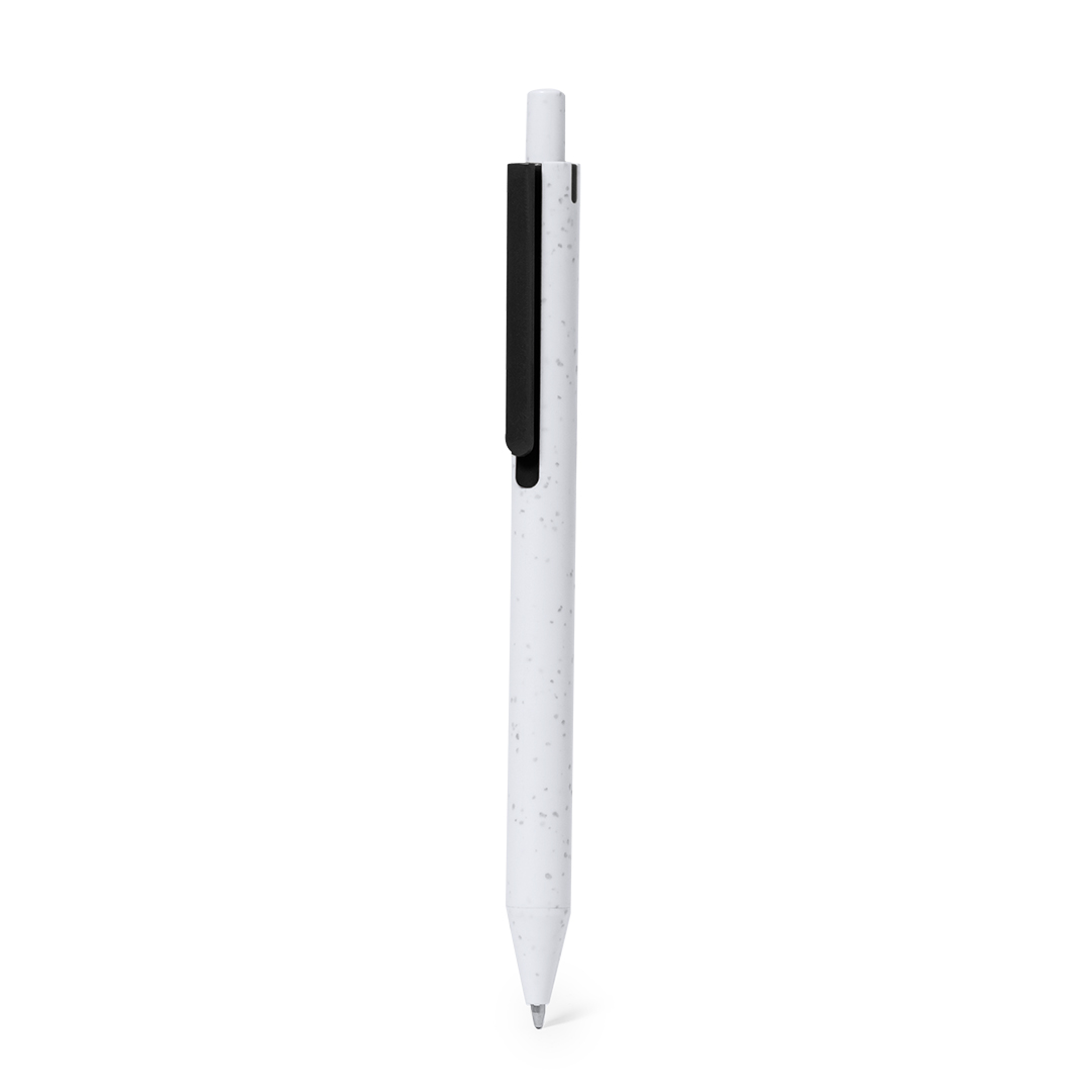 Penna con meccanismo a pulsante, realizzata in ABS riciclato. Con clip dai colori vivaci e fusto liscio bianco pieno. Etichetta ABS riciclato sulla parte superiore della penna. In inchiostro blu.