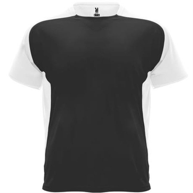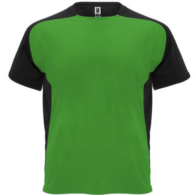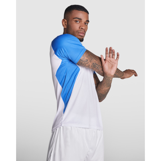 T-shirt tecnica manica corta raglan.1. Girocollo copri cuciture in tinta.2. Maniche e pannelli laterali in contrasto.