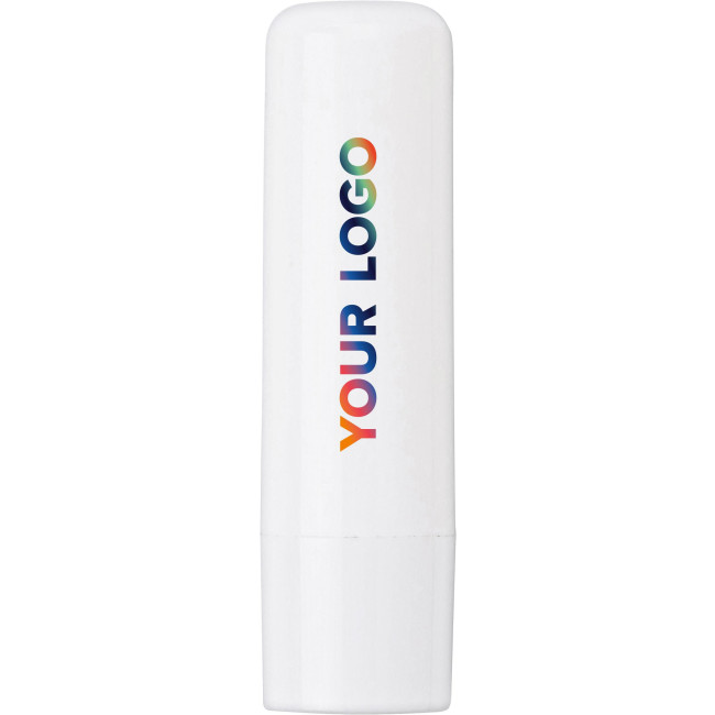 Balsamo per le labbra con protezione SPF 15, contenitore trasparente, i colori bianco, argento e nero hanno una finitura opaca.
